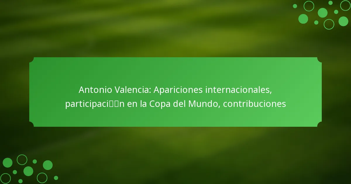 Las contribuciones de Antonio Valencia a la selección nacional de Ecuador van más allá de sus apariciones y actuaciones en la Copa Mundial. Ha sido un líder clave, a menudo sirviendo como capitán e inspirando a los jugadores más jóvenes a través de su dedicación y profesionalismo.